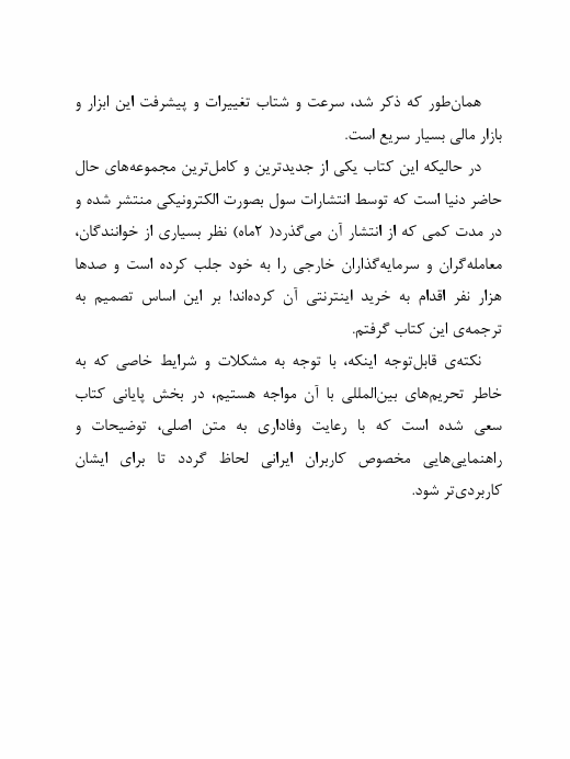 نکته قابل توجه اینکه، با توجه به مشکلات و شرایط خاصی که به خاطر تحریم های بین المللی با آن مواجه هستیم، در بخش پایانی کتاب سعی شده است که با رعایت وفاداری به متن اصلی، توضیحات و راهنمایی هایی مخصوص کاربران ایرانی لحاظ گردد تا برای ایشان کاربردی تر شود.