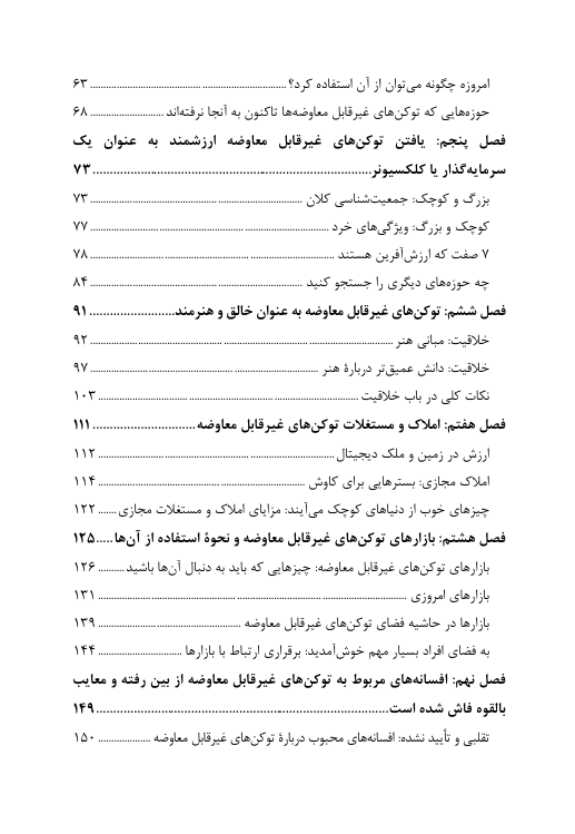 این کتاب ما را با چه چیزی آشنا می کند؟ برخلاف دنیای هنری سنتی که ممکن است پول شما بعد از یک هفته یا یک ماه پرداخت شود یا حتی اصلا پرداخت نشود، با توکن غیرقابل تعویض پول را بلافاصله در کیف پول ارز دیجیتال خود دریافت می کنید.