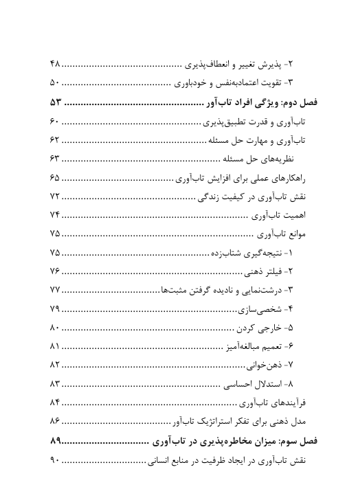 در این کتاب سعی کردم  مجموعه ای از مهارت ها و نگرش های لازم برای تاب آوری را معرفی کنم.