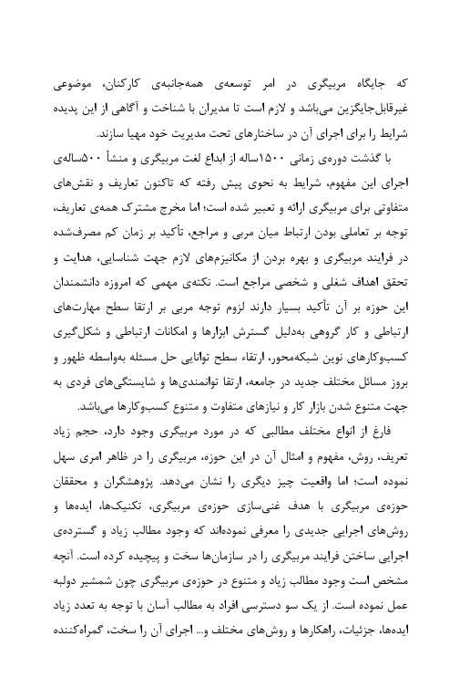 ترجمه کتاب حاضر از یک سو با هدف ایجاد شفافیت و انسجام نظری صورت گرفته و از سوی دیگر با رویکردی کاربردی و با هدف کاهش رکورد ناشی از عملکرد ضعیف سازمان ها از طریق افزایش اثربخشی آموزش به صورت عام و مربیگری به صورت خاص برای کارکنان سازمان ها می باشد.