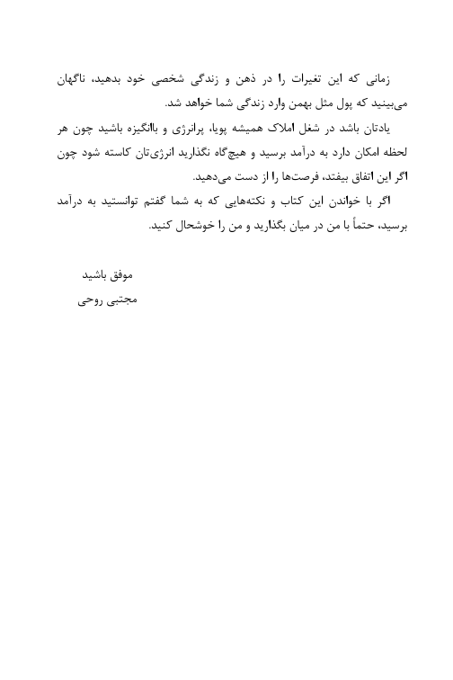 اگر با خواندن این کتاب و نکته هایی که به شما گفتم توانستید به درآمد برسید، حتما با من در میان بگذارید و من را خوشحال کنید.