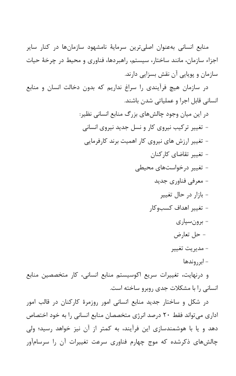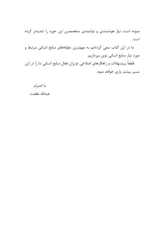 ما در این کتاب سعی کرده ایم به مهم ترین مقوله های منابع انسانی مرتبط و مورد نیاز منابع انسانی نوین بپردازیم.